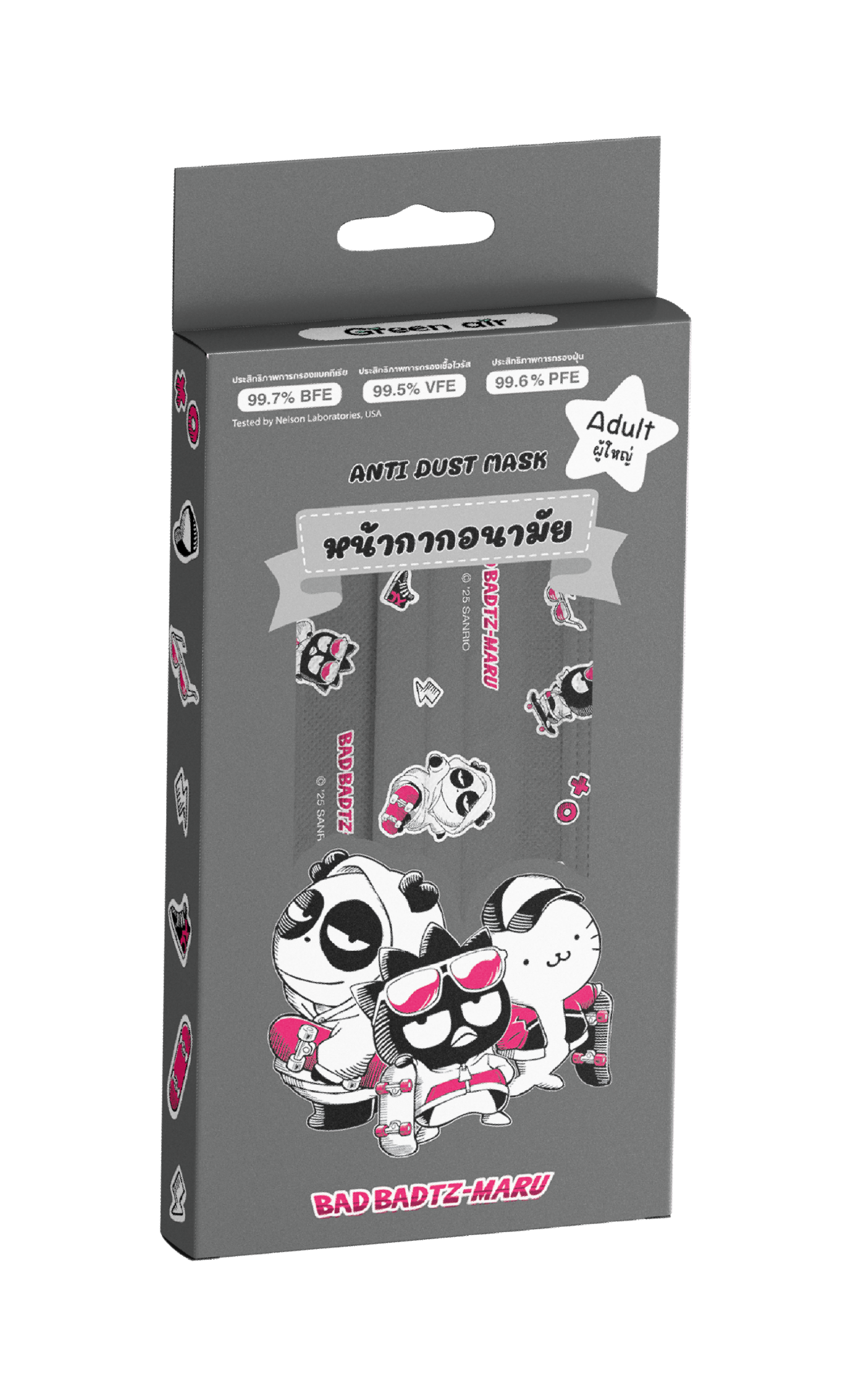 หน้ากากอนามัย สำหรับผู้ใหญ่ 10 ชิ้น ลาย Badbadtz-Maru