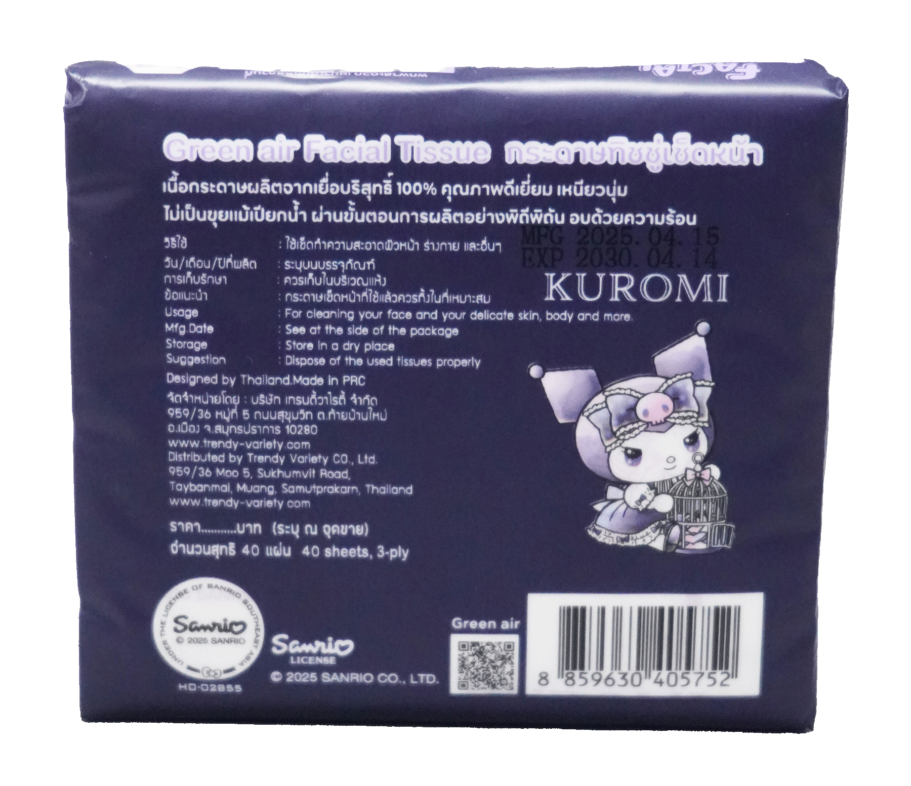กระดาษเช็ดหน้า 40 แผ่น / ห่อ Kuromi