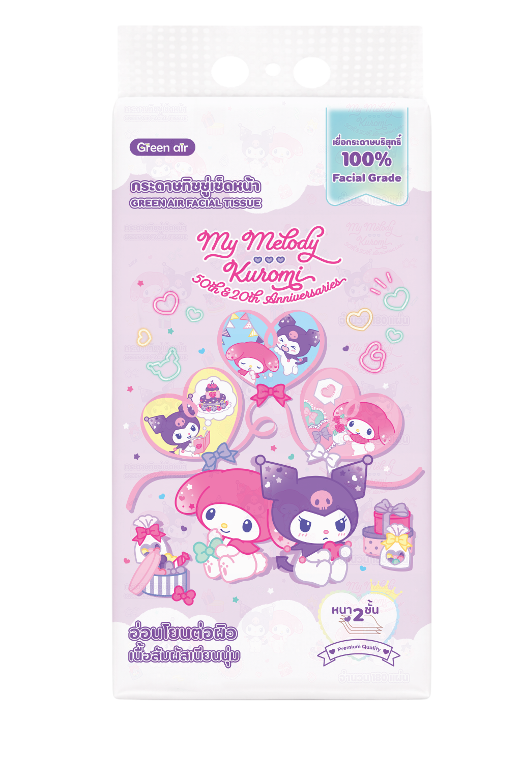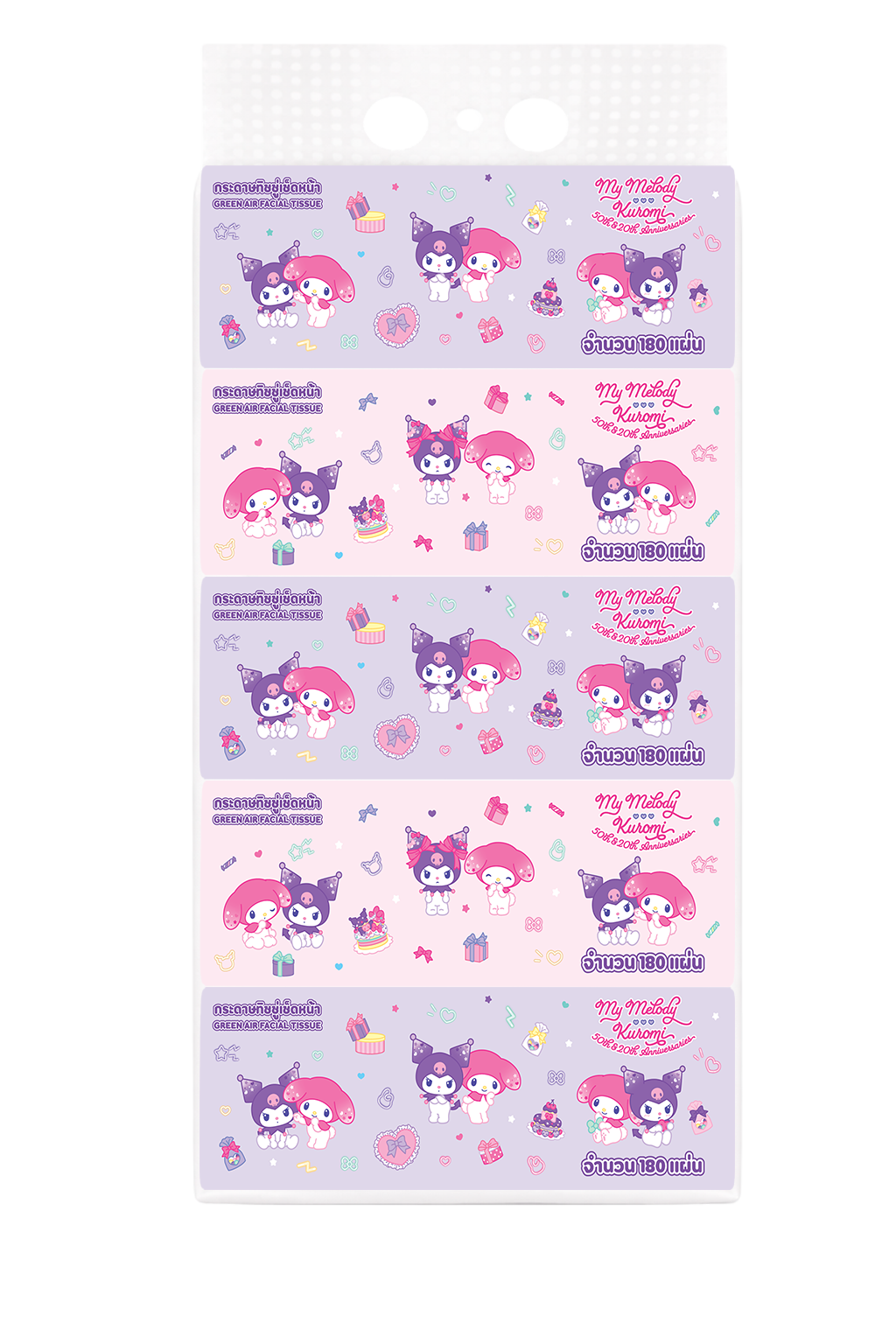 กระดาษเช็ดหน้า 180 แผ่น 5 ห่อ/ หิ้ว MyMelody x Kuromi