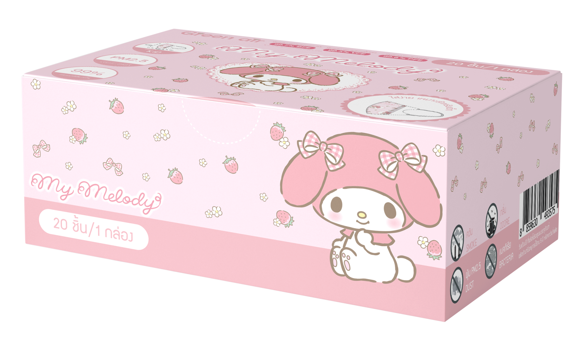หน้ากากอนามัย 3D My Melody สำหรับเด็ก 20 ชิ้น 2 ลาย