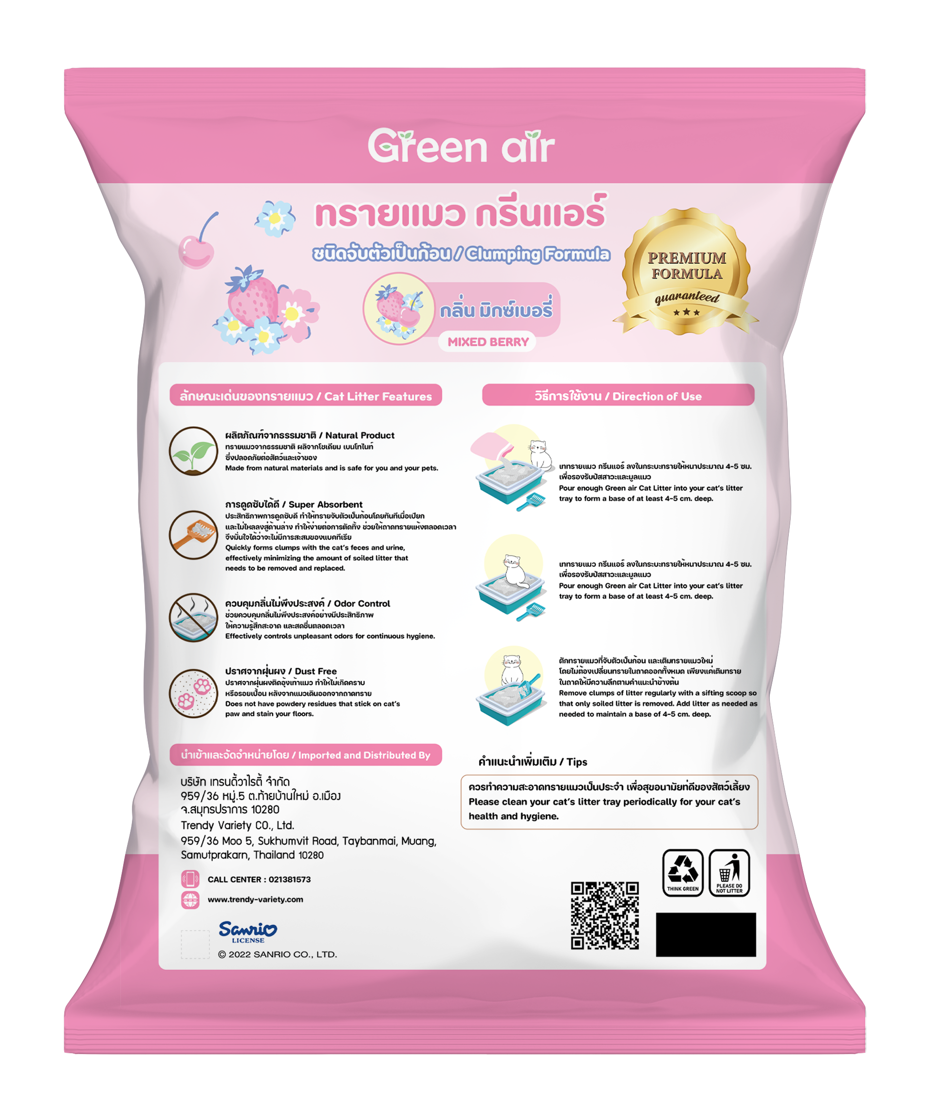 ทรายเบนโทไนท์ กลิ่นมิกซ์เบอร์รี่ สำหรับแมว 5 L